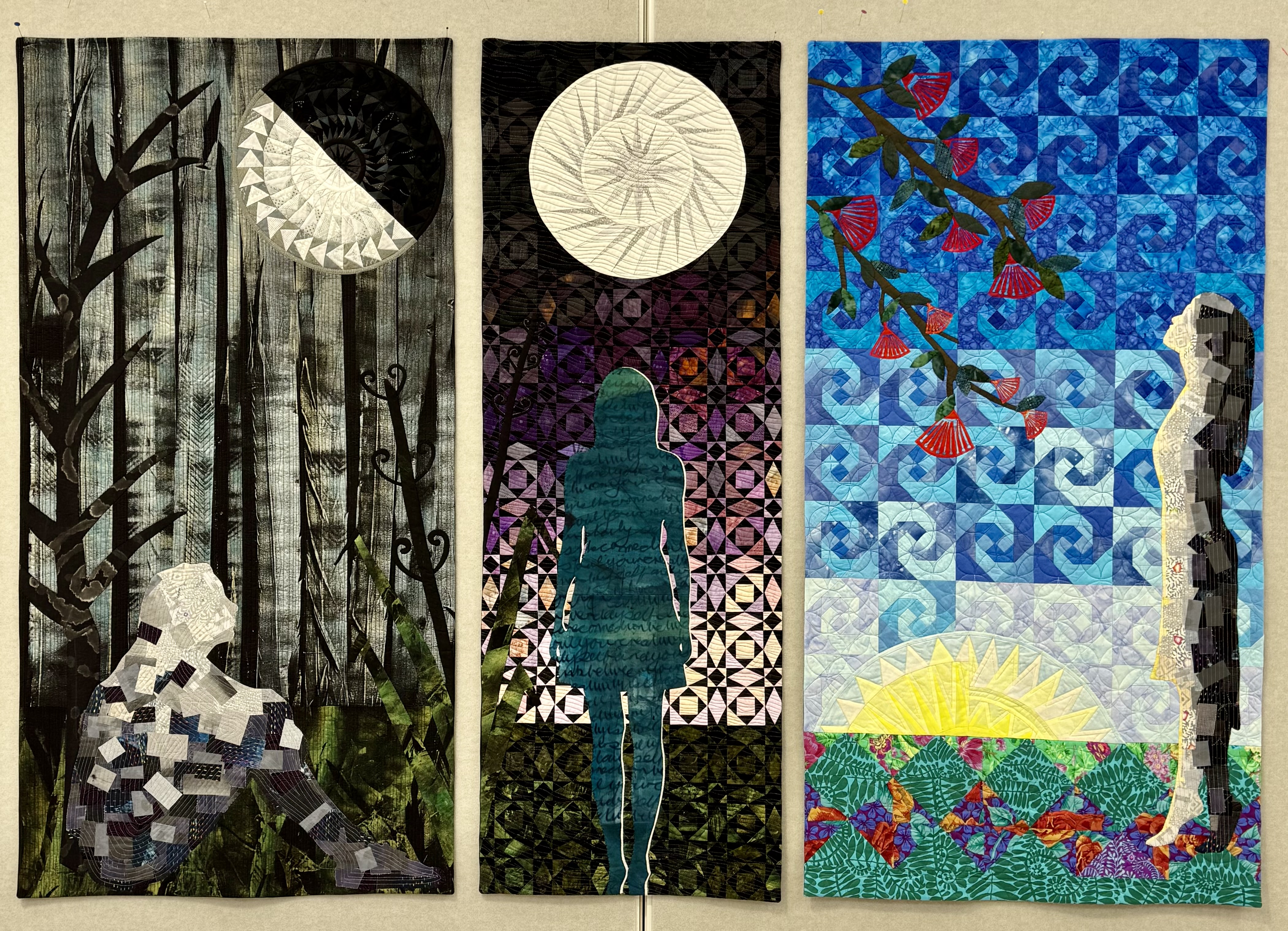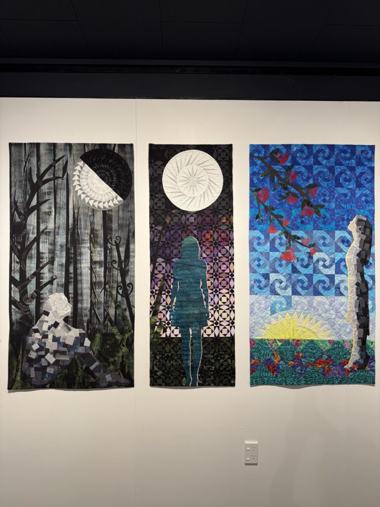 I was so surprised and humbled that on the first day of our exhibition my Garden Of Hope triptych sold to someone who connected with it and loved it as much as I did. So I asked the new owners if I could borrow it back to enter into our National quilt symposium exhibition later this year and they generously consented. So if you don’t see it in Arrowtown, you may see it in Christchurch at the ‘Threads of Our Time’ exhibition at Burnside High School from October 1-6.