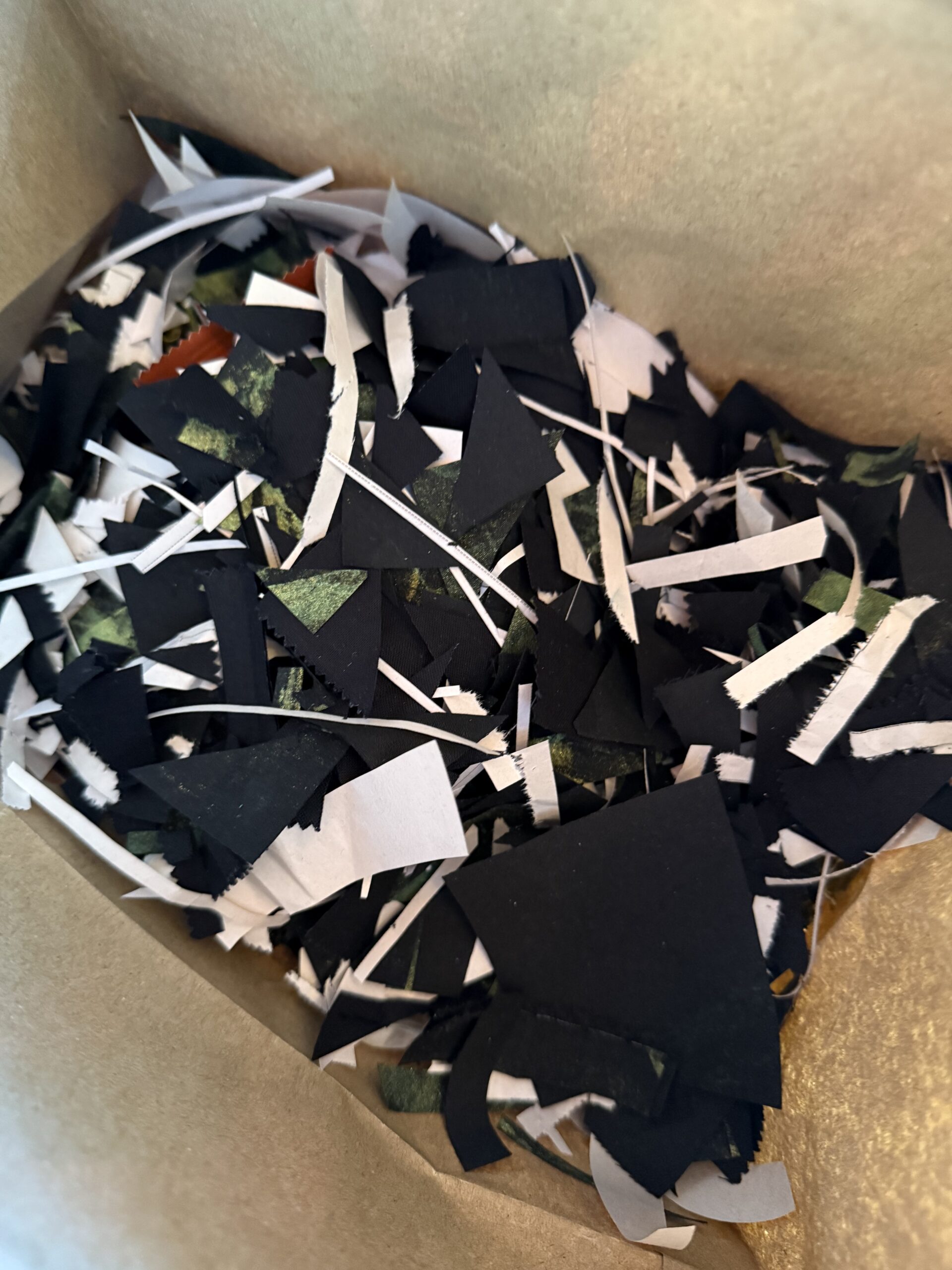I went through a lot of different backgrounds, foregrounds, figures and auditioning of fabrics before deciding on the final colours
